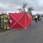 Nie żyje około 75-letni kierowca Renault. Jego auto wypadło z jezdni do głębokiego rowu i uderzyło w drzewo, mimo natychmiastowej resuscytacji podjętej przez policjanta i późniejszej reanimacji prowadzonej przez służby medyczne, życia mężczyzny nie udało się uratować. Okoliczności wypadku wyjaśnia policja