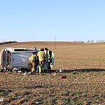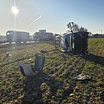 Wypadek na wyjeździe z Gostynia w kierunku Kunowa. Samochód osobowy, którym jechał tylko kierowca dachował w polu. Mężczyzna sam wydostał się z pojazdu, był przytomny, ale pod wpływem zdarzenia. Został zabrany do szpitala