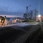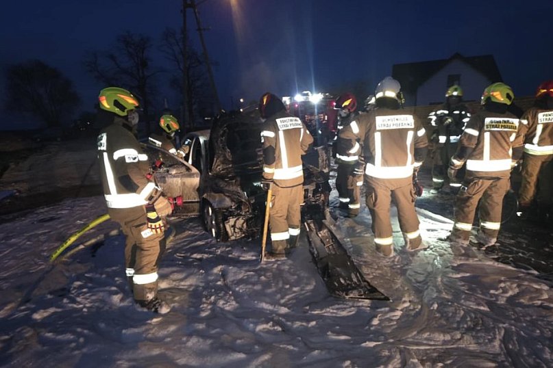 Groźne zdarzenie w Strzelcach Wielkich. Samochód marki Skoda Octavia wjechał w garaż, a chwilę później auto stanęło w ogniu. Dzięki szybkiej reakcji świadków udało się zapobiec większej tragedii. Płonący pojazd został wyciągnięty z garażu ciągnikiem i odholowany, gdzie ogień ostatecznie ugasili strażacy. Kierowcę zatrzymała policja. Jak udało nam się nieoficjalnie dowiedzieć mężczyzna był pijany