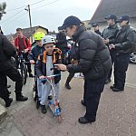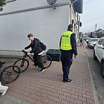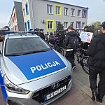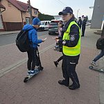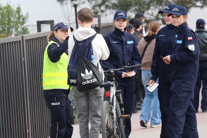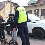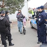 Przed Szkołą Podstawową nr 5 w Gostyniu policjanci prowadzili rano akcję profilaktyczną skierowaną do uczniów dojeżdżających do szkoły m.in. rowerami i hulajnogami. Mundurowi przypominali o zmianach w przepisach i zasadach bezpieczeństwa