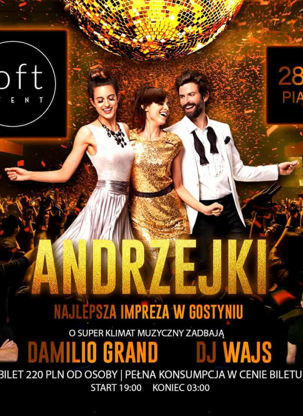 W piątek, 28 listopada, Loft Event zaprasza na niezapomniane Andrzejki pełne muzyki, tańca i świetnej zabawy. O klimat wieczoru zadbają Damilio Grand i DJ Wajs, a w cenie biletu – pełna konsumpcja. Start o 19:00, koniec o 3:00 nad ranem.