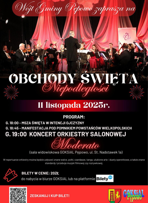 11 listopada 2025 roku w Pępowie odbędą się uroczystości z okazji Narodowego Święta Niepodległości. W programie msza święta w intencji Ojczyzny o godzinie 18:00, manifestacja pod pomnikiem Powstańców Wielkopolskich oraz koncert Orkiestry Salonowej Moderato o 19:00 w sali widowiskowej GOKSiAL. Bilety w cenie 20 zł dostępne są w biurze GOKSiAL