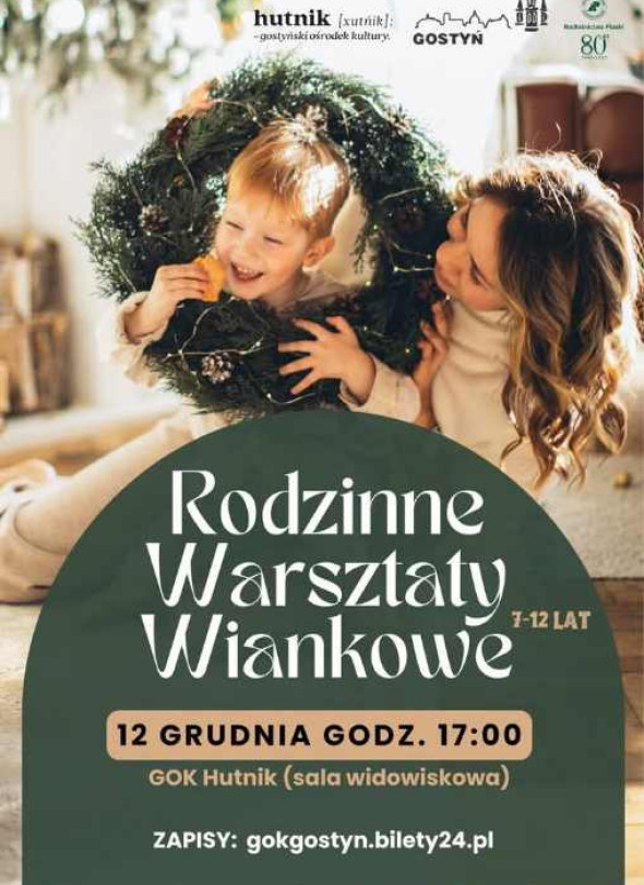 12 grudnia o godzinie 17 w GOK Hutnik w sali widowiskowej odbędą się rodzinne warsztaty tworzenia wianków dla dzieci w wieku od 7 do 12 lat, a zapisy prowadzone są na stronie gokgostyn.bilety24.pl.