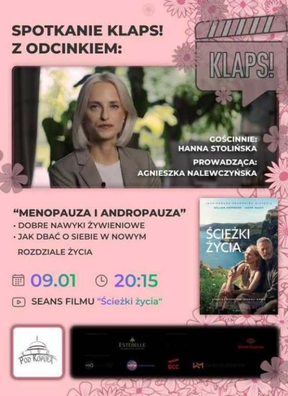 9 stycznia 2026 roku o godz. 20:15 w kinie Pod Kopułą w Gostyniu odbędzie się spotkanie z cyklu KLAPS!, poświęcone tematowi menopauzy i andropauzy, obejmujące rozmowę o dobrych nawykach żywieniowych oraz o tym, jak dbać o siebie w nowym etapie życia, połączone z seansem filmu „Ścieżki życia”; gościem spotkania będzie Hanna Stolińska, a rozmowę poprowadzi Agnieszka Nalewczyńska.