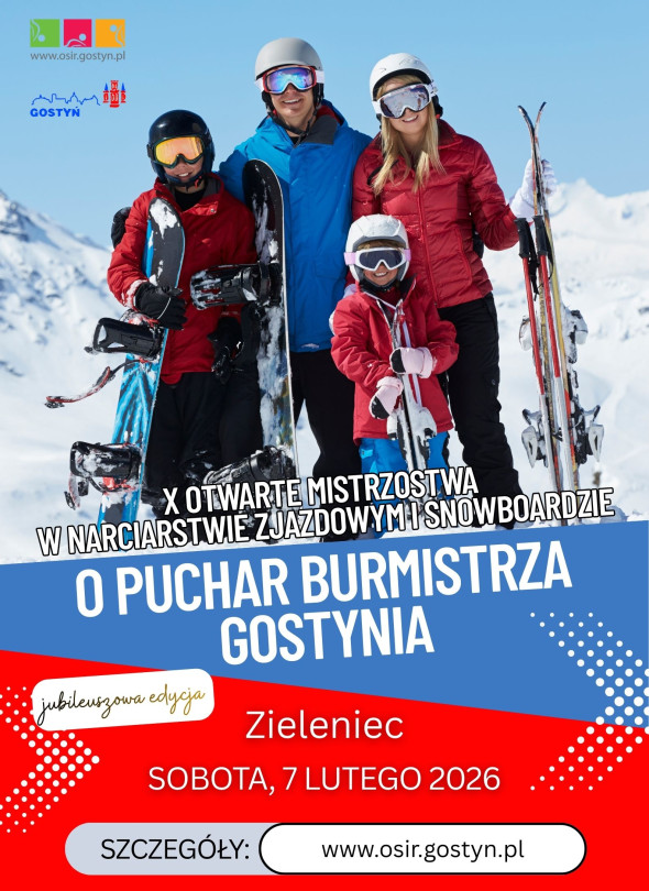 W sobotę 7 lutego 2026 roku w Zieleńcu odbędzie się jubileuszowa, dziesiąta edycja Otwartych Mistrzostw w Narciarstwie Zjazdowym i Snowboardzie o Puchar Burmistrza Gostynia, skierowana do miłośników sportów zimowych, a szczegółowe informacje dotyczące udziału i organizacji wydarzenia dostępne są na stronie www.osir.gostyn.pl.