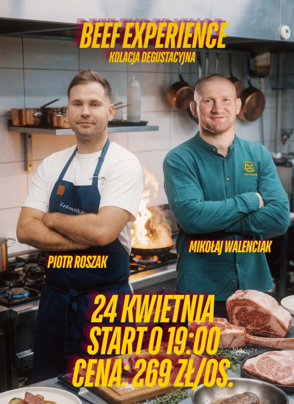 24 kwietnia 2026 roku w Gostyniu, w Restauracji Krawatka, odbędzie się kolacja degustacyjna „BEEF EXPERIENCE”, początek zaplanowano na godz. 19:00, cena wynosi 269 zł od osoby, gościem specjalnym będzie Mikołaj Walenciak, szef kuchni restauracji Yes Butcher, podczas wieczoru zaprezentowane zostanie autorskie menu degustacyjne oparte na wołowinie w różnych odsłonach, liczba miejsc jest ograniczona, a rezerwacje przyjmowane są pod numerem telefonu 604 466 551.