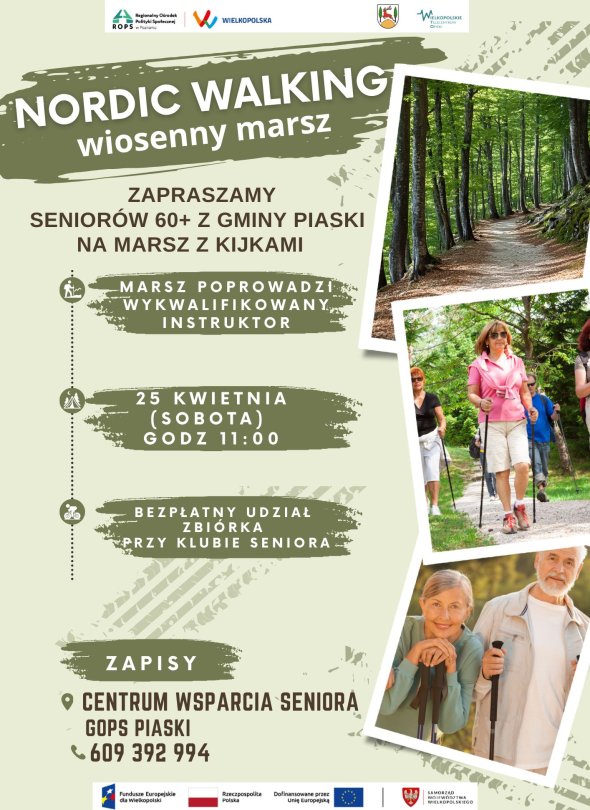 Zbiórkę zaplanowano przy Klubie Seniora, a marsz poprowadzi wykwalifikowany instruktor. Zapisy prowadzi Centrum Wsparcia Seniora GOPS Piaski, zgłoszenia można dokonać telefonicznie pod numerem 609 392 994.