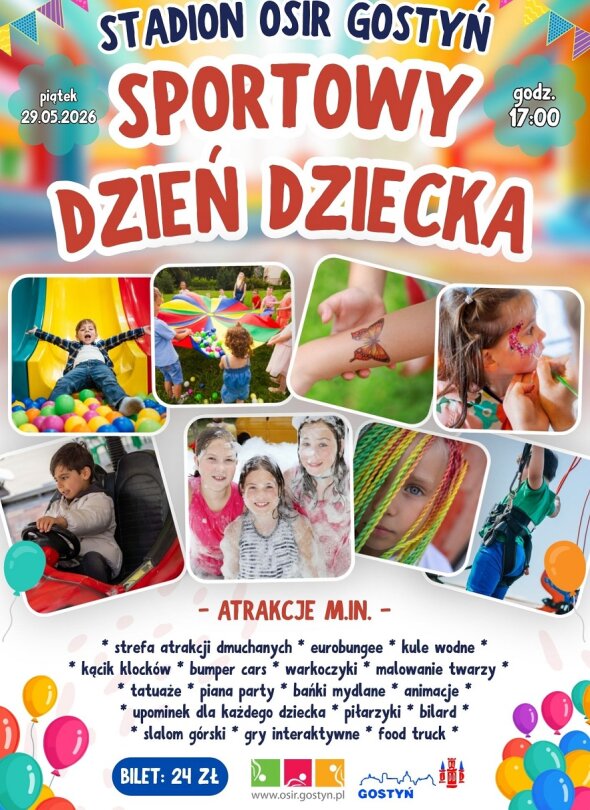 29 maja na stadionie OSiR przy ul. Sportowej w Gostyniu odbędzie się Sportowy Dzień Dziecka. Wydarzenie potrwa od godz. 17:00 do 20:00 i oferuje liczne atrakcje dla dzieci.