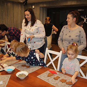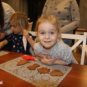 Już od wejścia do lokalu unosił się przyjemny zapach domowych wypieków. Dzieci rozsiadły się przy stolikach i niecierpliwie czekały na pierwsze pierniki, dopiero potem zaczęła się prawdziwa zabawa... Z ogromnym zaangażowaniem i pomysłowością młodzi cukiernicy tworzyli własne kompozycje, wykorzystując do tego ozdoby cukrowe. Tworzenie świątecznych pierników sprawiło wszystkim ogromną frajdę. Ci nieco młodsi, po nałożeniu lukru najczęściej próbowali od razu...jak to smakuje.