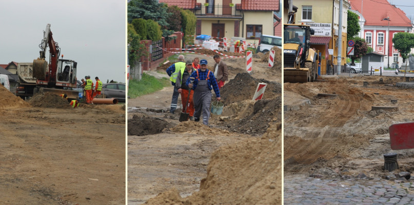 Ciężki sprzęt i kilka ekip budowlanych – to widok, jaki możemy spotkać na Pożegowie, gdzie powstają nowe ulice. Sporo dzieje się też w samym centrum miasta. W sumie gmina wyda na prowadzone obecnie inwestycje ponad 3,7 mln zł.