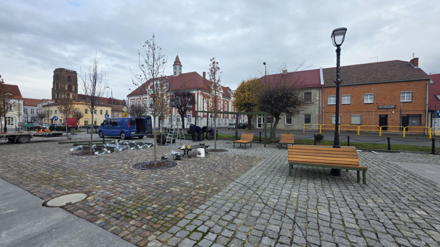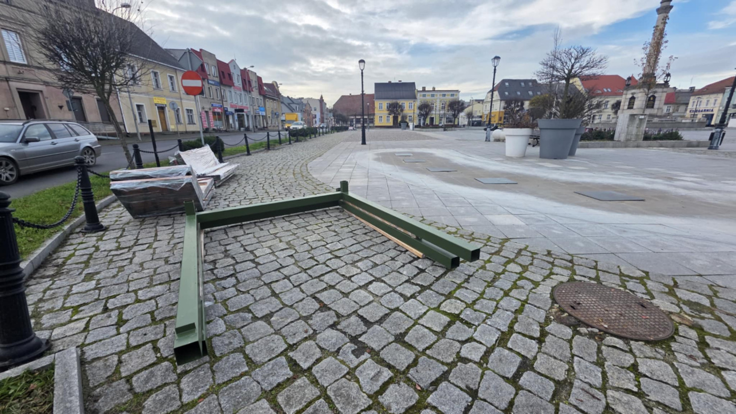 Na gostyńskim rynku trwa montaż nowych elementów małej architektury. W ciągu najbliższych dni pojawi się tam w sumie sześć zielonych "enklaw” - modułowych ławek z zadaszeniem, które mają stworzyć zacienione, przyjazne miejsca do spotkań. Prace potrwają jeszcze kilka dni, a finał zapowiadany jest na przyszły tydzień.