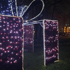 Na plantach i skwerze Wolontariusz WOŚP widać już świetlne figury, w tym renifer zamknięty w roziskrzonej kuli, ogromne złote gwiazdy czy przechodni prezent, do którego można wejść i zrobić sobie pamiątkową fotografię.