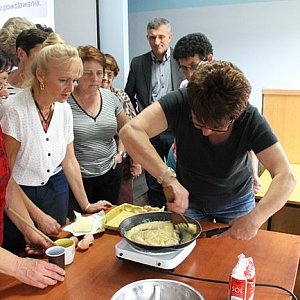 Warsztaty składały się z części teoretycznej i praktycznej. Historię tego lokalnego produktu przedstawiła uczestnikom dr Anna Grześkowiak-Przywecka z Muzeum Narodowego w Szreniawie. - Tylko w Wielkopolsce i na Śląsku pod koniec XIX wieku ser smażony znany był i powszechnie spożywany przez ludność wiejską. Wzrost wyrobu i spożycia sera smażonego nastąpił dopiero w połowie XX wieku, kiedy rozpoczęto jego produkcję na skalę przemysłową - przypominała prowadząca pogorzelskie warsztaty dr Anna Grześkowiak-Przywecka.