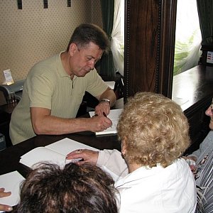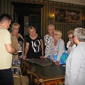 Rajd rowerowy zakończył się krótkim pobytem w pałacu w Gębicach, który był możliwy dzięki uprzejmości p. Bogusława Janika – gospodarza obiektu. Młodsi uczestnicy wycieczki z zaciekawieniem przyglądali się pałacowym wnętrzom, natomiast babcie bez reszty pochłonięte były oglądaniem starych fotografii i rozpoznawaniem osób, które na nich widnieją. Furorę wśród wycieczkowiczów zrobiła niepozorna książka pt. "Kyndyj nasze łejce, dziadyj i pradziadyj" autorstwa Gabriela Roszaka, która napisana została językiem gwarowym – niegdyś powszechnym, a i dziś często słyszanym. Gdy tylko Bogusław Janik skończył odczytywać krótki fragment najnowszego lokalnego wydawnictwa, kilka osób natychmiast zadeklarowało chęć nabycia książki, która będzie stanowić doskonałą pamiątkę z wycieczki.