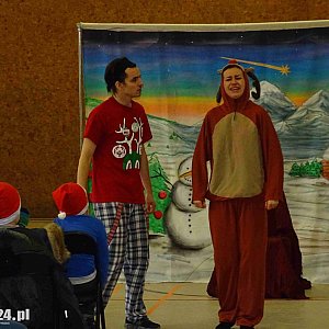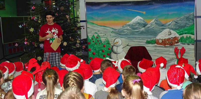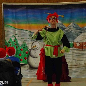 Dzieci ze Skoraszewic otrzymały zaproszenie od GOK w środę 6 grudnia wcześnie rano, wraz z rozpoczęciem zajęć lekcyjnych po 8.00. - Naszym gościem był Teatr „Maska” z Krakowa. Jego aktorzy zaprezentowali się w Skoraszewicach, następnie przyjechali do GOK-u, by i tu odegrać o godz. 10:00 program profilaktyczny w tematyce świąt. Spektakl nosił tytuł ,,Za pasem Święta, a ktoś majstruje przy prezentach”. Jak się okazało, złośliwy skrzat – pomocnik świętego mikołaja - podmieniał życzenia dzieci: chłopcy otrzymywali w prezencie lalki, a dziewczynki traktorki. Jeden z aktorów postanowił odmienić los dzieci i z pomocą pępowskich uczniów przemienił serce złośliwego skrzata, który psuł wszystkim święta, bo sam czuł się samotny - mówi Leszek Żelazny, dyrektor GOK w Pępowie.