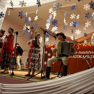 Świąteczne, sielsko-anielskie spotkanie miało miejsce w MGOK w Borku Wlkp. W bożonarodzeniowy nastrój wprowadziła wszystkich rodzinna atmosfera i gwiazdkowa sceneria. - MGOK w swojej działalności kulturalnej podejmuje różnorodne wyzwania. Dziś gościmy u nas kapelę góralską Karpackie Zbóje. Jest to niebywale atrakcyjny prezent od MGOK dla mieszkańców gminy Borek Wlkp. Występ kapeli góralskiej Karpackie Zbóje to nie tylko wspaniała muzyka, ale również interaktywna zabawa dla najmłodszych i góralski humor - mówi Marta Hojak, instruktor z MGOK Borek Wlkp. - To spotkanie pełne jest niezapomnianych emocji - dodaje. Dzieci wysłuchały legend o góralach i zbójnikach oraz poznały elementy góralskiego stroju i tradycji. W radosny nastrój wprowadził licznie zgromadzoną widownię krótki kurs góralskiej i zbójnickiej piosenki oraz popisowych zbójnickich figur góralskich.