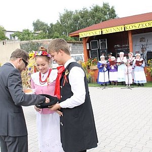 Gminne uroczystości dożynkowe w Koszkowie rozpoczęła msza święta w intencji rolników oraz poświęcenie wyremontowanej świetlicy wiejskiej. Po nabożeństwie barwny korowód przeszedł przez wieć na miejscowy plac. Piękną oprawę miała też część obrzędowa dożynek. Wszystkich gości, a w szczególności rolników powitała sekretarz gminy Elżbieta Pawlak. - Spotykamy się dziś by solidarnie i w radości podziękować wszystkim związanym z rolnictwem. Za całoroczny trud pracy i działania. To także to co było już dziś naszym udziałem podczas uroczystej mszy świętej, okazanie wdzięczności boskiej opatrzności za wszelkie dobrodziejstwa i prośbę o bogosławieństwo na przyszły rok - mówiła do zgromadzonych Elżbieta Pawlak, sekretarz gminy Borek Wlkp. - Wspaniale, że dożynkowy zwyczaj jest pielęgnowany również w naszej gminie - dodała.