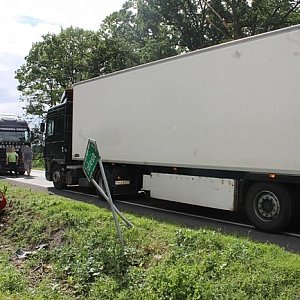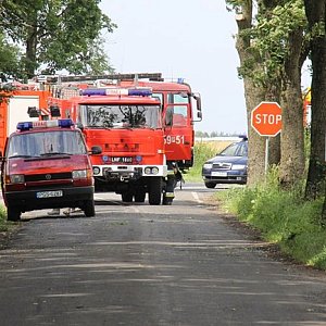 Zdarzenie miało miejsce ok. godz. 14:30 na skrzyżowaniu drogi krajowej nr 12 z drogą do Zalesia i Koszkowa. Z nieustalonych przyczyn ciężarówka zderzyła się z samochodem osobowym marki Ford Fiesta, prowadzonym przez starszego mężczyznę, który następnie wjechał do przydrożnego rowu.