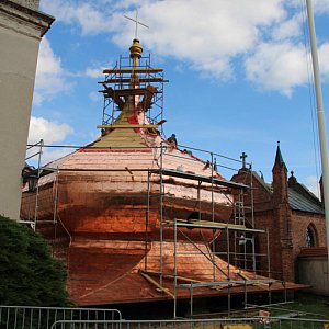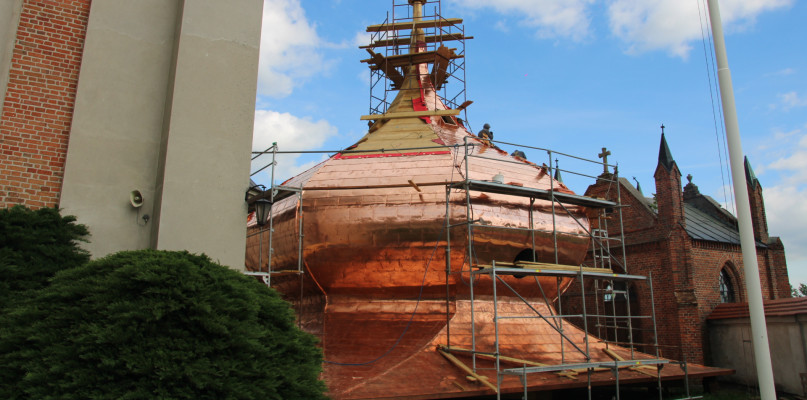 Budowa nowej kopuły na sanktuarium w Zdzieżu trwa od kilku miesiącu. Wszystko wskazuje na to, że prace zbliżają się ku końcowi. Drewnianą konstrukcję pokryła częściowo miedziana blacha. Jak szacują pracownicy, całość waży grubo ponad dwadzieścia ton.