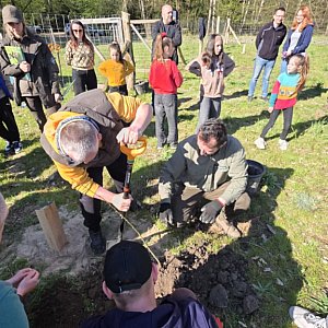 Leśniczy Leśnictwa Stawiszyn Tomasz Miller tłumaczył z kolei techniczne szczegóły sadzenia. Jak wyjaśniał, sadzonki przygotowano w donicach z zakrytym systemem korzeniowym, a samo sadzenie wymaga zaangażowania i wysiłku, bo chodzi o to, by uczestnicy naprawdę mieli udział w tworzeniu tego miejsca.
