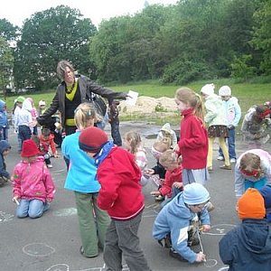 Imprezę prowadziła pani Regina Kot, która na samym początku złożyła dzieciom gorące życzenia z okazji ich święta w imieniu swoim oraz organizatorów.Podczas konkursu zdolnościami plastycznymi mogły się pochwalić zarówno przedszkolaki jaki i uczniowie z klas I ? III ze Szkół Podstawowych z terenu gminy Borek Wlkp. Na wydzielonych odcinkach drogi pod okiem wychowawców i opiekunów dzieci tworzyły wielkie obrazy , na których królowała kreda we wszystkich kolorach.