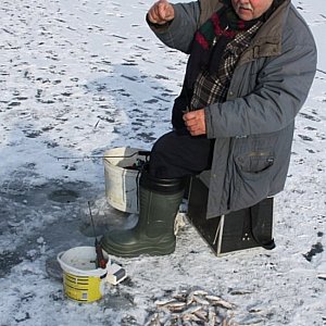W międzyczasie prezes koła Mieczysław Matuszewski zadbał o łowiących i przywiózł gorące kiełbaski , które przy temperaturze - 13 stopni Celsjusza smakowały jak najlepsze danie .