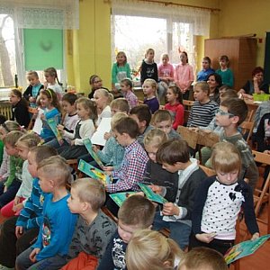 Dodatkowo Uczniowie z klasy IV i V przygotowali dla swoich młodszych kolegów prezent - przedstawienie teatrzyku kukiełkowego pt. "Wróżka Lukrecja". Uroczysty dzień przyjęcia pierwszaków do grona czytelników biblioteki z pewnością zostanie na długo zapamiętany.