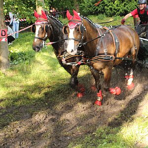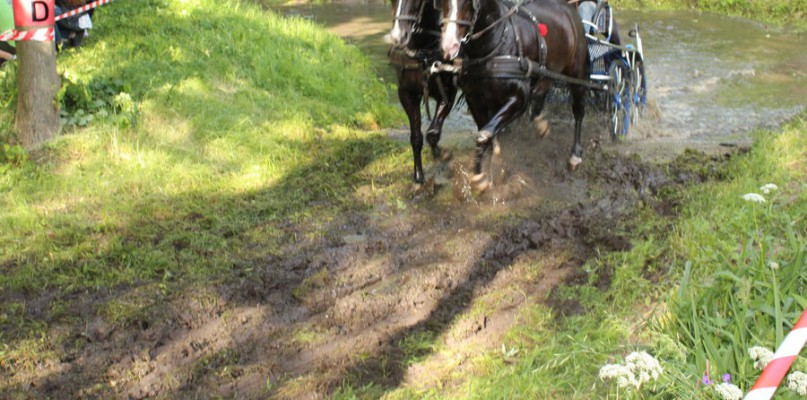 Miłośnicy koni i pasjonaci sportów jeździeckich spotkali się w Rokosowie na kolejnej edycji imprezy "Konie i Powozy". Największą atrakcją były zawody, w których zarówno konie, jak i powożący nimi zawodnicy musieli wykazać się dzielnością i zręcznością na trudnym torze przeszkód. - Konkurs składał się z dwóch elementów: konkursu zręczności oraz maratonu, czyli toru przeszkód, który odbywa się w parku w Rokosowie. Sześć przeszkód i 5000 metrów dystansu przy pogodnej i parnej pogodzie to nie lada wysiłek dla powożących, jak i koni - tłumaczył Jarosław Szymoniak, reprezentujący Związek Hodowców Koni oraz komentator tegorocznych zawodów. Na trasie maratonu były liczne przeszkody - drzewa, słupy, a najbardziej widowiskową była przeszkoda wodna. Pojedynki toczyły się w kategoriach: pary kuców i jedynek, konie duże i pary duże oraz cztery czwórki. Zwyciężał ten zaprzęg, którego suma punktów w poszczególnych kategoriach była największa.