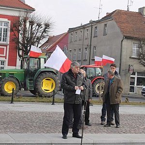 Protest rozpoczął się od odśpiewania hymnu narodowego. Przez całą godzinę trwania manifestacji wokół rynku jeździło kilka oflagowanych ciągników. Akcję jak podkreślali rolnicy zorganizowano w obronie polskiej ziemi i przeciwko pogarszającej się sytuacji na polskiej wsi. - Bóg, honor, ojczyzna - te wartości są dla nas najważniejsze. A w tej chwili tracimy bardzo dużo. Rozpoczął się czwarty rozbiór Polski, rozbiór bez udziału obcych wojsk, bez udziału karabinów i armat. Rozgrabili i rozgrabiają naszą Polskę. Grabieżcy są ze Wschodu, jak i Zachodu. Myślę, że będziemy robić wszystko, aby nie dopuścić do dalszej grabieży naszej Ojczyzny - mówił Zbigniew Gała.