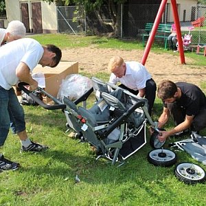 Sprzęt AGD trafił do Bodzewa, a wózek - kabriolet do czwórki niepełnosprawnych dzieci z Przedszkola Samorządowego z oddziałami integracyjnymi w Piaskach. Holendrzy na oczach dzieci i rodziców oraz zaproszonych gości rozpakowali wózek i złożyli go. Była też pierwsza próbna jazda przedszkolaków. Tim i Theo Veldhuis otrzymali podziękowania od Jolanty Sowińskiej, dyrektorki przedszkola oraz laurki wykonane przez dzieci. - Choć jesteśmy tylko posłańcami, to bardzo miło było nam przywieźć wózek i zobaczyć wielką radość, jaką ten podarunek wam sprawił – podkreślił Theo Veldhuis.
