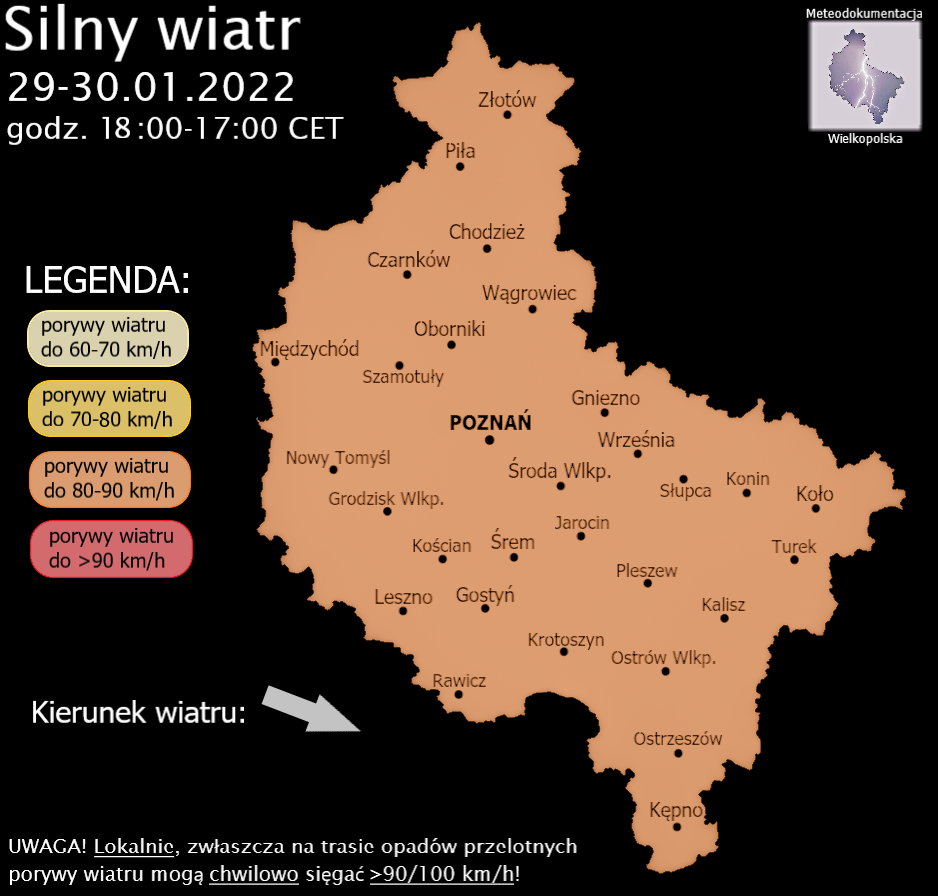 Ostrzeżenie pogodowe podajemy za profilem MeteoWielkopolska. Jeśli możecie udostępniajcie je dalej.