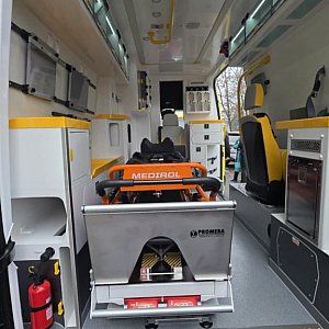 - Bardzo bogate wyposażenie, dziewięciostopniowa skrzynia biegów, profesjonalnie przygotowany przedział medyczny z kamerą… Ratownicy mają podgląd do tego przedziału medycznego, mogą obserwować to, co się dzieje w środku - mówił Robert Marcinkowski, wskazując również na elementy bezpieczeństwa i "przeskok cywilizacyjny", jeśli chodzi o technologię i komfort pracy.