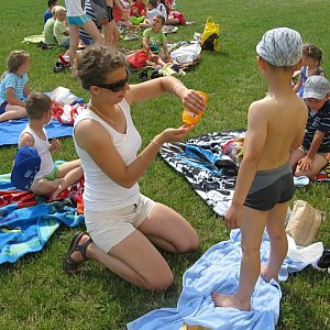 Przed budynkiem szkoły ustawiono kilka basenów, które napełniono wodą. -Na możliwość zażycia orzeźwiającej kąpieli podczas zajęć wszystkie przedszkolaki zareagowały z wielkim entuzjazmem. Dzieciaki szalały w wodzie, biegały boso po trawie i piknikowały na kocach. Było jak na plaży – relacjonuje Jolanta Pawlaczyk z ZS w Bodzewie. Maluchy liczą na to, że przy sprzyjającej pogodzie dyrektor pozwoli im jeszcze nie raz na plażowanie i oddanie się wodnym igraszkom.