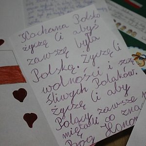 - Bardzo wzruszające było dla nas, jak nasze dzieci podeszły do wykonania zadania związanego w przygotowaniem życzeń dla Polski. Przy niektórych życzeniach łzy do oczu się cisnęły - mówiła pedagog Agnieszka Kubica. - Podeszli do tego zadania bardzo emocjonująco. Te życzenia wypływały z głębi serca i pracowali nad tym zadaniem razem z rodzicami - dodała. - Te życzenia brzmiały bardzo dorośle - podsumował dyrektor Zbigniew Jakubowski. Tego dnia w szkole dominowały biało-czerwone barwy. Każdy uczeń i pracownik placówki miał własnoręcznie wykonany kotylion. Zewnętrzna ściana szkoły przyozdobiona została flagą Polski, chyba największą w powiecie gostyńskim.