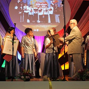 Wyrazem uznania były również pamiątkowe patery, które imiennie otrzymali poszczególni członkowie zespołu, dyplomy i list gratulacyjny. Słowa uznania i upominki przekazali także przedstawiciele zespołów uczestniczących w przeglądzie. W kolejnej części goście mogli posłuchać koncertu jubileuszowego w wykonaniu zespołu "Tęcza", który zaprezentował utwory wykonywane podczas piętnastu lat swoich występów.