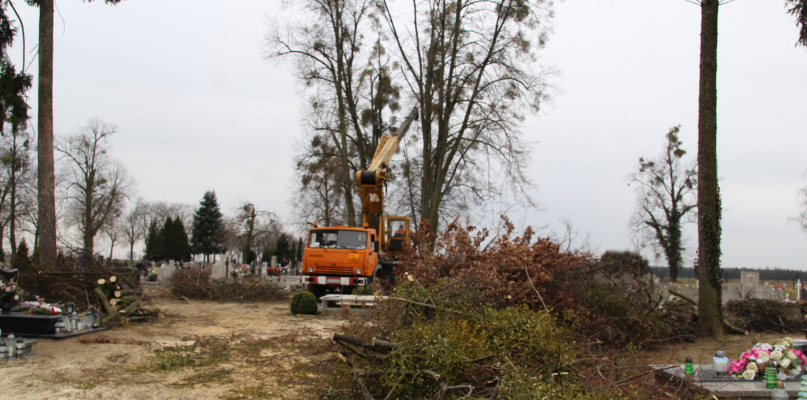 Wycinką zajęli się sami parafianie, gdyż koszty wynajmu specjalistycznej firmy byłyby bardzo wysokie. - Drzewa mają około 80-90 lat. Większość nigdy nie była przycinana. Dziś niektóre osiągnęły wysokość nawet 18 metrów i są zagrożeniem - mówił jeden z mężczyzn pomagających w pracach. - Postanowiliśmy pomóc w ich usunięciu zupełnie za darmo. Gdyby zlecić taką wycinkę specjalistycznej firmie, koszty na pewno byłyby bardzo wysokie i pewnie proboszcz nie wykonałby ich wszystkich tak szybko - kontynuował kolejny. - Mamy ciężki sprzęt – specjalny dźwig i kosz. Wszystko wykonujemy bardzo ostrożnie, żeby nie uszkodzić nagrobków - dodaje.