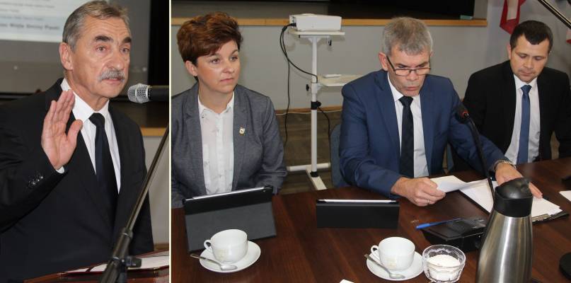Posiedzenie sesji inauguracyjnej rozpoczęło się od złożenia ślubowania przez nowo wybranych radnych. Po odczytaniu roty wywołani kolejno rajcy wstawali i wypowiadali słowo "Ślubuję" Wszyscy zrobili to dodając zdanie "Tak mi dopomóż Bóg". W kolejnych punktach obrad, radni wybrali ze swego grona przewodniczącego i wiceprzewodniczących. Wyniki nie były zaskoczeniem. Tak jak spekulowano w kuluarach ugrupowanie wójta Wiesława Glapki nie zamierzało podzielić się władzą z Forum Demokratycznym.