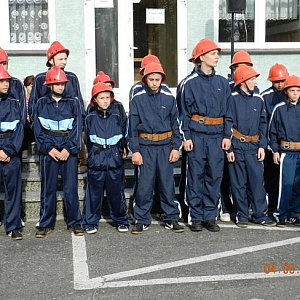 Po wyjściu z kościoła, strażacy wraz z zaproszonymi gośćmi przemaszerowali pod ratusz, gdzie pod pomnikiem św. Floriana złożono kwiaty i zapalono znicze. Dalej, ulicami miasta defilada przeszła na plac przed remizą w Krobi, gdzie odbyło się uroczyste ślubowanie przyszłych adeptów OSP z całej gminy. Po ślubowaniu, na zapleczu remizy odbyło się wspólne biesiadowanie przy grochówce i kawie.
