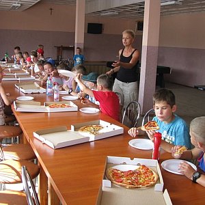 Ostatnim punktem programu były podchody, podczas których trzeba było m.in. opatrzyć „rannego” i przetransportować go na noszach oraz odkręcić hydrant, aby ugasić „pożar”. - Zadania są tak pomyślane, że liczy się praca zespołowa. Fajnie, jeśli jest mniejsze dziecko, bo na nosze zazwyczaj typują tego najmłodszego i najlżejszego, ale z kolei przenoszenie „rannego” zazwyczaj przypada w udziale starszym i silniejszym – mówi Agnieszka Wujek. Celem pieszego rajdu była świetlica wiejska, gdzie dokonano podsumowania zabawy i wręczono uczestnikom drobne upominki. Spore poruszenie wśród dzieci i młodzieży wywołało pojawienie się dostawcy pizzy, która już po chwili zaczęła znikać ze stołu w rekordowym tempie.