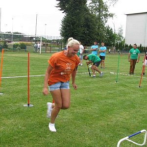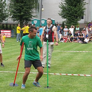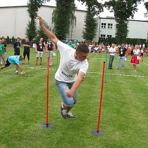 Zmagania seniorów rozpoczęły się nietypowo – trzeba było strącać pomidory ułożone na pachołkach przy pomocy piłeczki tenisowej znajdującej się w „stópce” rajstop naciągniętych… na głowę. Było też coś dla prawdziwych strongmanów – przerzucanie dwustukilowej opony od ciągnika. Bezkonkurencyjni okazali się zawodnicy z Gogolewa, którzy podrzucali ją z taką łatwością, jakby wykonana była ze styropianu. Hitem popołudnia okazała się kolejna „bezpomidorowa” konkurencja – slalom połączony z biegiem przez płotki i strzałem do bramki. Tor przeszkód był dziecinnie prosty. Szkopuł w tym, że reprezentanci sołectw musieli najpierw wykonać osiem obrotów dookoła kija baseballowego, opierając czoło na jego trzonku. Po takim wstępie niektórzy od razu padali na trawę z lekkim obłędem w oczach, inni mylili kierunki, a pozostali, próbując utrzymać równowagę podczas biegu, przyjmowali pozy rodem z najlepszych skeczy Monty Pythona. Widzowie wprost pękali ze śmiechu.