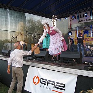 Jako pierwsi na scenie prezentowali się najmłodsi lokalni artyści z miejscowych grup: Dziecięcego Zespołu Biskupiańskiego przy Przedszkolu Samorządowym „Pod Świerkami” w Krobi, Dziecięcego Zespołu Biskupiańskiego przy ZSSPiG w Krobi, Zespołu „Młodzi Biskupianie” ze Starej Krobi oraz Kapeli Dudziarskiej działającej przy GCKiR im. Jana z Domachowa Bzdęgi w Krobi. Kolejną atrakcją był występ Anny Chudej, utytułowanej artystki ludowej, która zaśpiewała wraz ze swą wnuczką – Anią Bartkowiak. Widzowie chcący nauczyć się wiwata mieli ku temu okazję dzięki Zespołowi Folklorystycznemu z Domachowa i Okolic, który poprowadzi ł krótki kurs tańca. Grupa Teatralna „Na Fali” ze swym programem gwarowym również doskonale wpisała się w klimat imprezy.