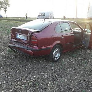 Skoda "wylądowała" w polu - zdjęcia