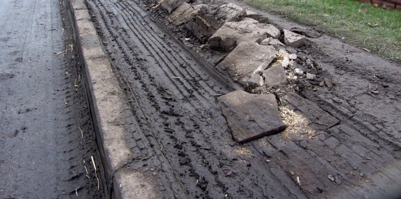 Domy pobrudzone,przystanek zablocony,drogi rozjechane,koszmar we wsi. Kto za to odpowiada?
