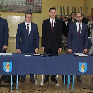 Ślubowanie nowego burmistrza Krobi Łukasza Kubiaka nastąpiło dopiero na końcu sesji. W swoim pierwszym oficjalnym wystąpieniu gratulował on nowo wybranym rajcom, dziękował swoim poprzednikom i podkreślał że liczy na dobrą współpracę z zespołem krobskiego magistratu, kierownikami jednostek organizacyjnych, sołtysami i wszystkimi mieszkańcami. - Powierzyli mi państwo funkcję burmistrza Krobi. Jest to dla mnie osobiste wyróżnienie, zobowiązanie i obiecuję państwu, że będę się starał, żeby tego oczekiwania nie zawieść - mówił burmistrz Łukasz Kubiak. Na sali obecny był ustępujący włodarz Sebastian Czwojda, który po wystąpieniu nowego burmistrza stwierdził, że czas się odmeldować. Sesję zakończono miłym akcentem - pierwszym wspólnym zdjęciem nowego burmistrza i Rady Miejskiej.
