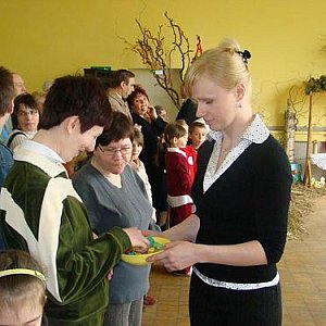 W trakcie wczorajszej uroczystości było też tradycyjne dzielenie się jajkiem, po którym organizatorzy zaprosili wszystkich na poczęstunek. Na zakończenie otwarcia wystawy wicestarosta gostyński i Dyrektor PCPR wręczyli autorom prac okolicznościowe dyplomy oraz świąteczne stroiki przygotowane przez mieszkańców DPS-u w Chumiętkach.