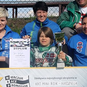 Powody do zadowolenia ma też Jaś Galeja. Po sobotnich wyścigach pogorzelanin był pierwszy w najliczniejszej kategorii Mini Rok, a ostatecznie uplasował się w zawodach na drugiej pozycji. – Jestem bardzo zadowolony ze swojego wyniku. Jechało mi się bardzo dobrze, choć w niedzielę przyczepność toru była gorsza po deszczowej nocy. Przez pewien czas byłem na prowadzeniu, ale koledzy jechali nieczysto i niestety wypadłem z toru – zauważa Jasiu Galeja, który już w środę wyrusza wraz z kadrą narodową na treningi do Alcañiz w Hiszpanii.
