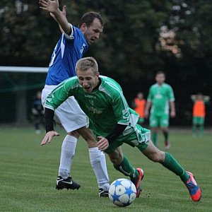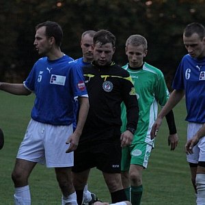 Zdecydowanie lepszym zespołem w pierwszej połowie byli gospodarze. To drużyna Tomasza Gawrońskiego stworzyła więcej sytuacji podbramkowych i teoretycznie powinna prowadzić. Znakomitej okazji nie wykorzystał niestety Cezary Tomczak, przegrywając pojedynek sam na sam z golkiperem Pogoni. Sporo szczęścia mieli również goście w dwóch innych sytuacjach. Oprócz tego zawodnicy Pogoni nie zachwycali grą, co trudno zrozumieć, gdyż zespół ten znajduje się w ścisłej czołówce klasy okręgowej.