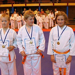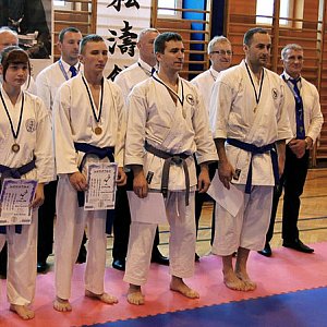 Karatecy „Tęczy” zdobyli w sumie pięć medali. Trzy złote krążki wywalczyli Dawid Mrowiński, Wojciech Wieczny i Dawid Mila w kategorii kata drużynowe open. W kategorii kata młodzików do lat trzynastu srebrny medal zdobyła Maria Rozwalka, a brązowy w kata seniorów Marek Marcinkowski. Bliskie miejsca na podium były też Daria Pietrzyk, Maria Rozwalka i Patrycja Niewrzędowska w kata drużynowym. - Dziewczyny pokazały się z dobrej strony. Wygrywając swoje walki, dotarły aż do półfinałów i uzyskały taką samą liczbę punktów jak trzecia drużyna. O ich miejscu tuż za podium zadecydowały minimalne różnice w małych punktach - zauważa trener drużyny Waldemar Szwedek. - Dziękujemy grupie rodziców z Gostynia, którzy przyjechali na turniej i gorąco oraz bardzo głośno dopingowali zawodników „Tęczy” - dodaje sensei.