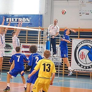 Zespół UKS Kaniasiatka I Gostyń rozegrał w sali sportowej gostyńskiego Zespołu Szkół Ogólnokształcących z UKS Piątka Turek mecz o miejsca 5-8. Pierwsza partia mocno zaskoczyła gospodarzy, którzy popełniając sporo błędów, ulegli tureckim zawodnikom. W kolejnych setach ich gra nie uległa poprawnie, a przeciwnik wykazywał znacznie więcej zaangażowania. Do końca meczu gra toczyła się punkt za punkt. Więcej szczęścia mieli jednak gospodarze, którym z pewnością sprzyjał głośny doping publiczności. Spotkanie zakończyło się zwycięstwem gostyńskich siatkarzy.