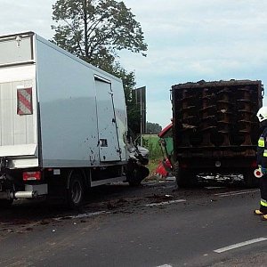 Niebezpieczne zdarzenie na krajowej "dwunastce", tuż przed obwodnicą Borku Wlkp. Dostawczy iveco przewożący mundury amerykańskich żołnierzy uderzył w ciągnik rolniczy. Do kolizji doszło w momencie, gdy traktorzysta zaczął skręcać w lewo.